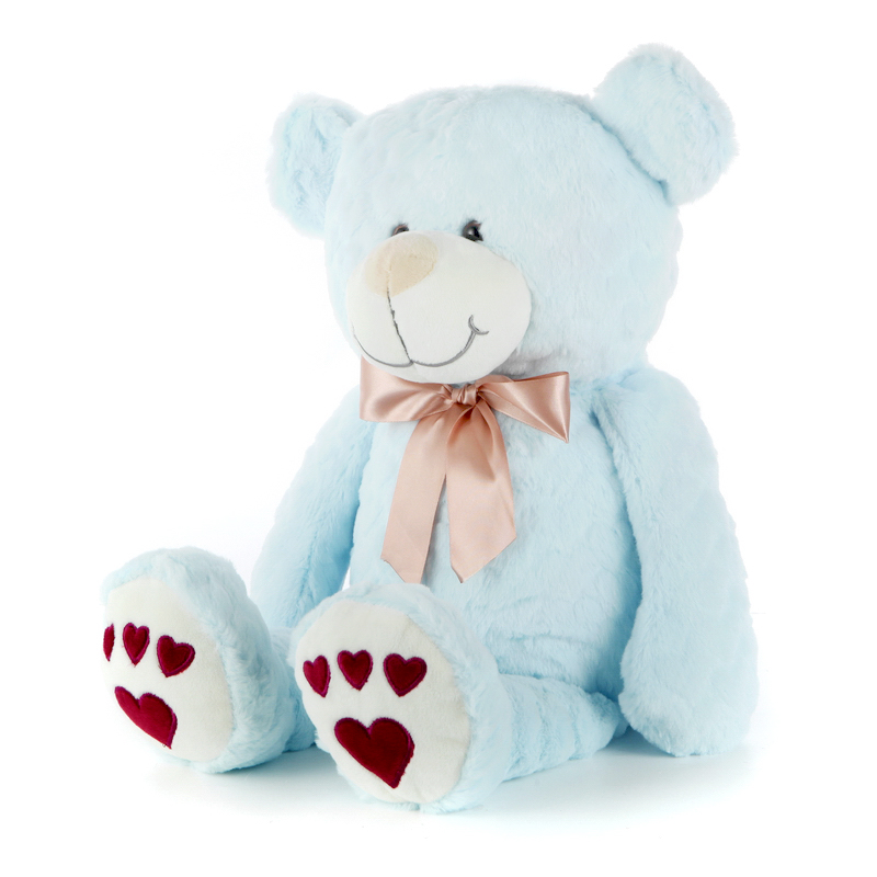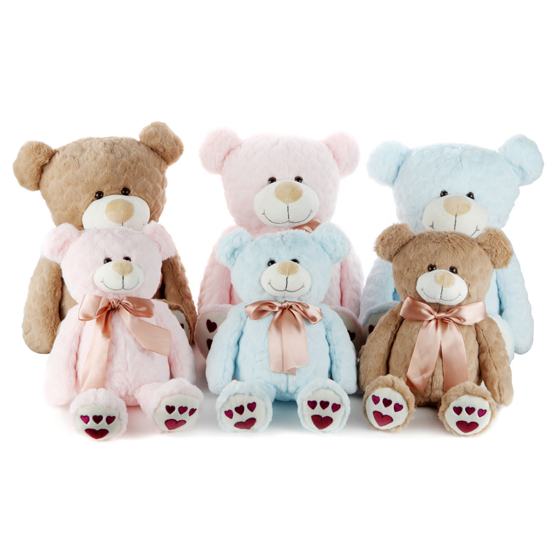 The teddy bear with a friendly face and super-soft heart pattern fur. Wearing a smart ribbon bow and wine red paw embroidery.He is perfectly sized for snuggling, making a treasured addition to any child's bedroo