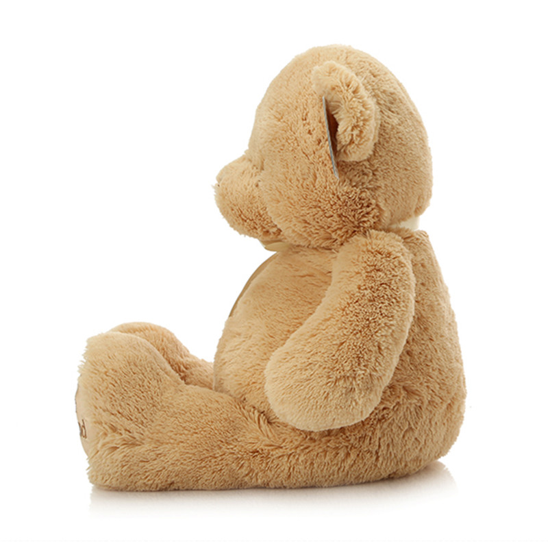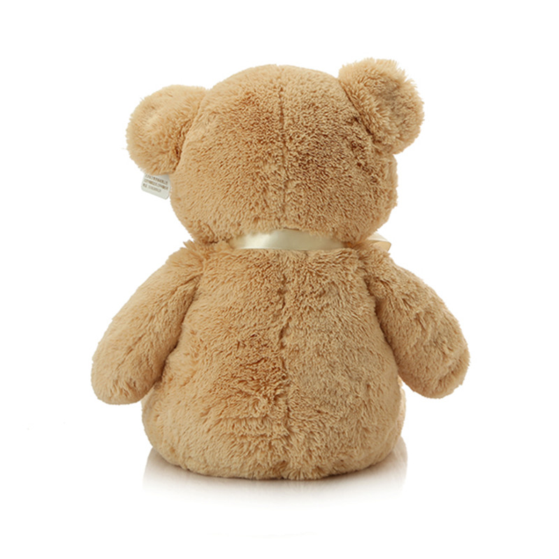 This baby teddy bear is made from a special, super-soft plush material. This Khaki colored teddy bear features a seated position and a fabric ribbon. Your child's safety is our top concern, so this products feature embroidered eye and nose details. Machine-washable. For all ages.