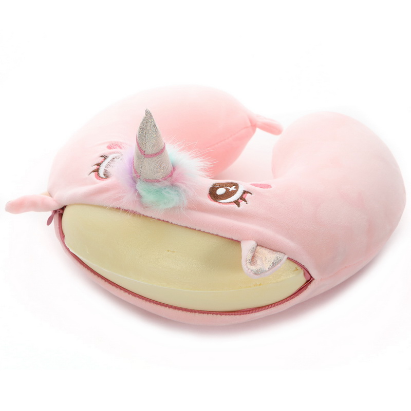 .This soft plush unicorn Memory Foam travel neck pillow to the shape of your head giving you the best support.