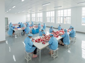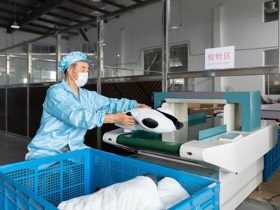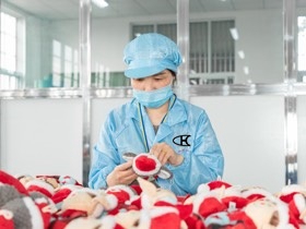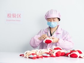 The appearance of each finished product is checked for size distortion to guarantee the visual appeal of the plush toys.
