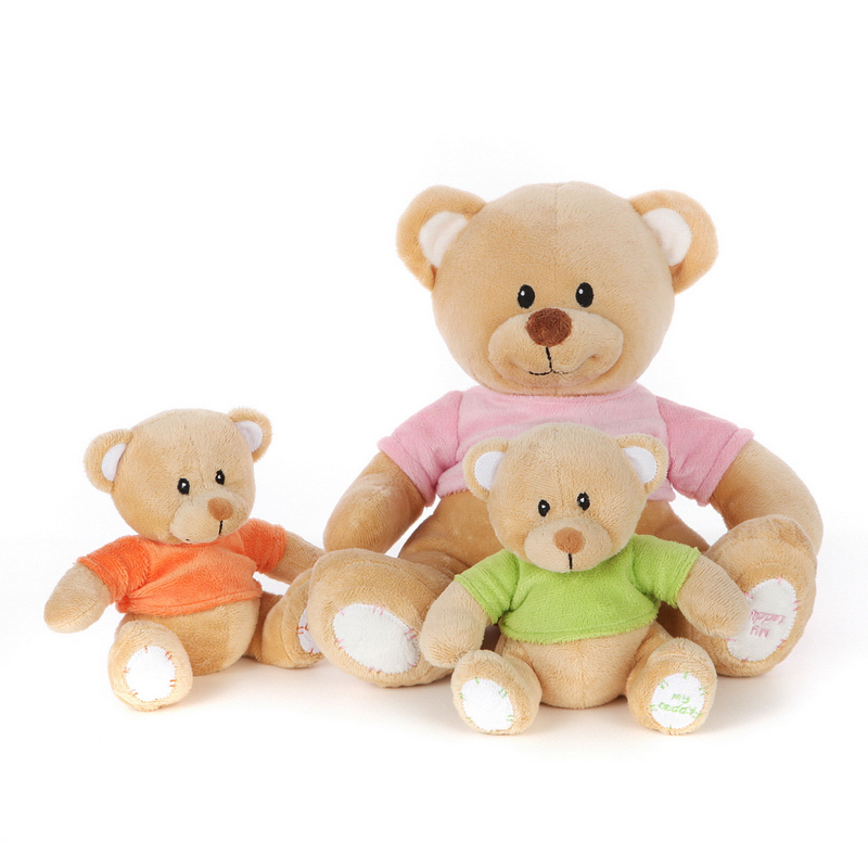 Soft, cute, adorable, huggable, cuddly and premium quality plush teddy.These come in an assortment of 3 colors for T-shirt:light green,orange,light pink.Little boys and girls will love this toy for imaginary play and as a companion for car rides, going to sleep, nap time or even soothing fears of the dark.