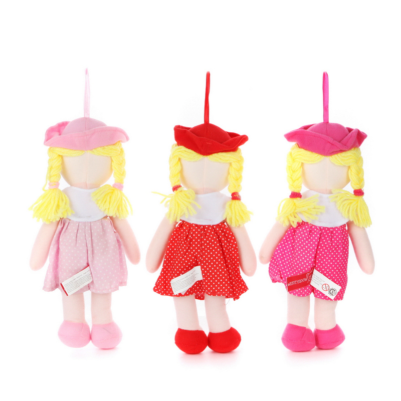 Rag doll is made with soft material, making her ideal to cuddle with your baby. This doll makes the perfect best friend for sleep overs, tea time, or just hanging around. Fun to be with your little girl will adore plush toy and her company. Soft Doll can be added to your little girls doll collection. Also she can be used for room decor and will add a sweet touch.
