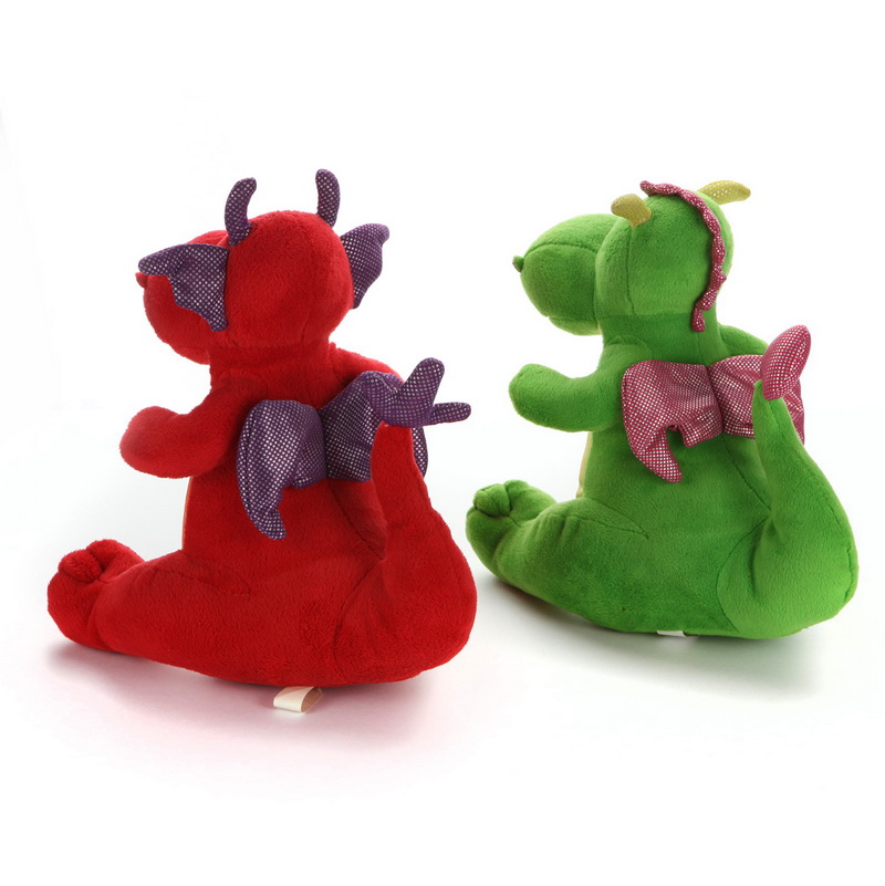 .Cute cartoon dinosaur design in red, green color with shinny horn,wing and tail.