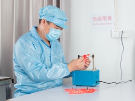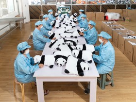 The appearance of each finished product is checked for size distortion to guarantee the visual appeal of the plush toys.